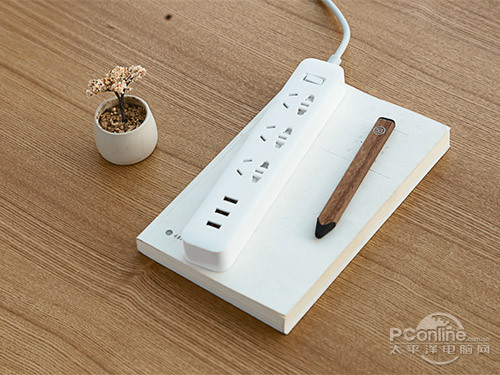 小米插线板采用一体成型设计,不可拆卸●◁,手感很牢固,AC插脚三个铜片出厂的时候均使用透明塑料套进行保护。小米插线板仅铅笔盒大小■▽,其提供3组国标插孔,3个USB充电口(总电流3•★◆.1A,单口支持2A快充),提供110V-240V全电压。