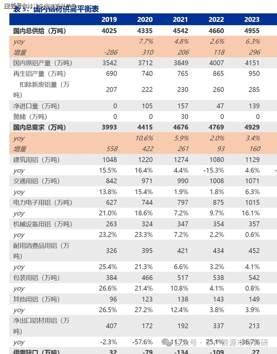 电解铝需求韧性突出,26 年开始进入供给短缺周期。铝下游消费领域中,交通、电力电子、机械设备用铝、耐用消费品、包装行业都呈现出增长趋势。随着交通行业中,新能源汽车的快速发展,对轻量化材料铝的需求大幅增加;电力电子行业随着 5G 基站建设、AI 数据中心扩容等,对铝制散热材料、导电材料等需求持续上升;耐用消费品行业,如家电、电子产品外壳等需求也在国补刺激下带动铝消费上升。尤其在电力行业,随着大型水电站项目建设,预计仍会有新线路需求,预计仍是中国原铝消费增长的主要动力来源。